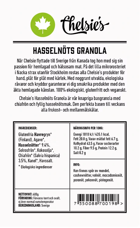 Chelsies Granola Hasselnöt 400g